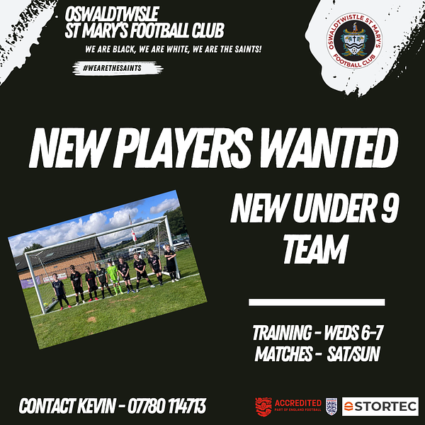 About Camps & Events Saturday Teams Sunday Teams Club Welfare Merchandise Fundraising FeesDownload our mobile app to hear more about Oswaldtwistle St Mary's Football Club.