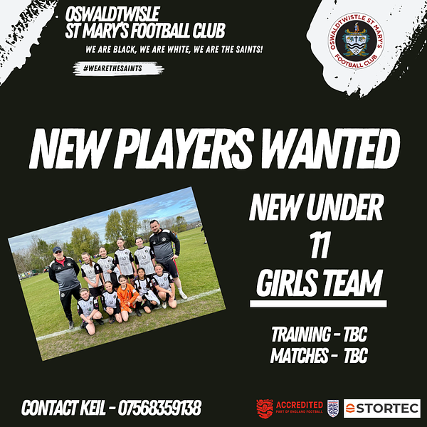 GirlsFootball #GrassrootsPride #OswaldtwistleStMarysFC #InclusiveSport #FutureChampions #CommunityClub